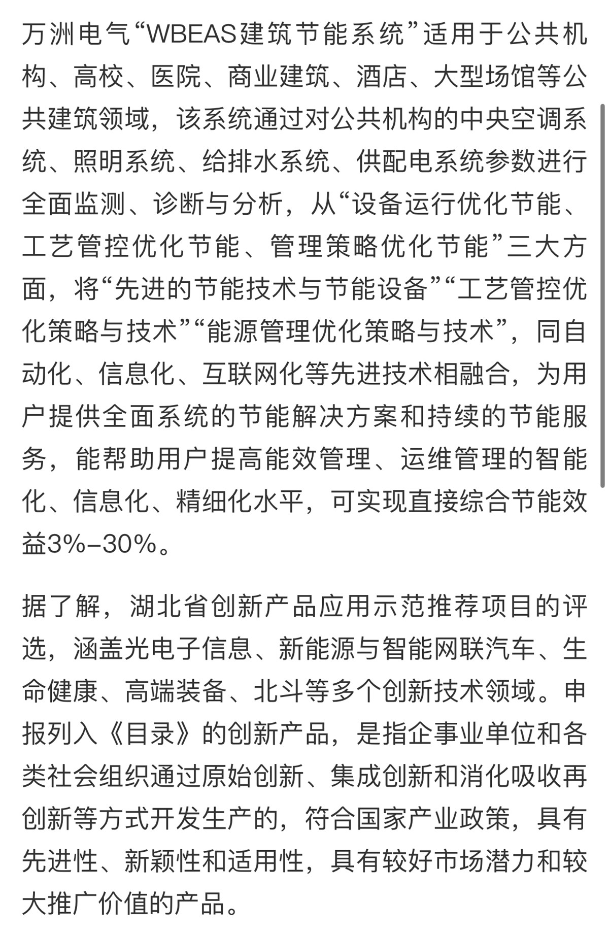 【湖北日報】萬洲電氣一節能新產品入列省創新產品示范目錄
