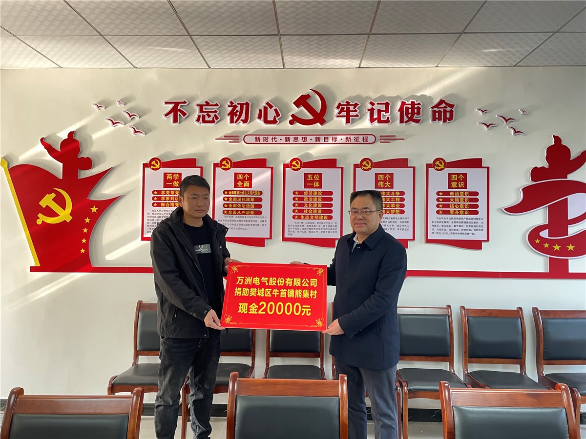 歲末春初,情暖鄉(xiāng)村。1月20日上午,萬洲電氣黨委書記、副總經(jīng)理李明輝帶領(lǐng)萬洲黨委副書記萬善武、萬洲工會主席熊海娟等人來到樊城區(qū)牛首鎮(zhèn)熊集村開展幫扶活動。