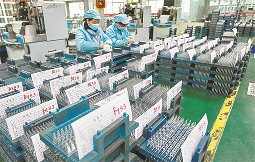 3月22日,在萬洲電氣股份有限公司旗下云川光電的生產車間,工人在生產線上作業。據了解,新春開工以來,萬洲電氣及旗下云川光電的訂單均處于飽和狀態,新增的訂單已排至5月份。一季度萬洲電氣產值預計達到17000萬元。